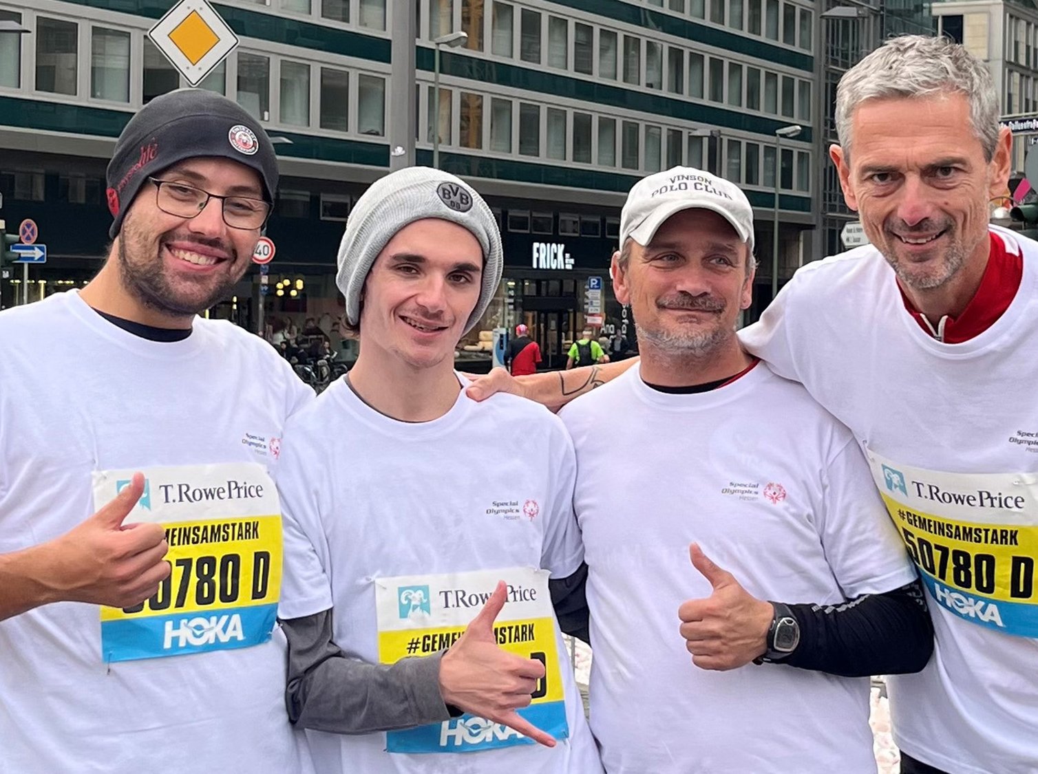 Zum Einen unterstützten die Schlocker Läufer bei Kilometer 38, das Team der Special Olympics, die dort eine Verpflegungsstelle betreuten. Über sechs Stunden lang versorgten sie dort mit den anderen Helfern die knapp 14 000 Läuferinnen und Läufer, sowie die Staffelteilnehmer, die sich auf die 42,195 Kilometer lange Strecke machten. Das Wetter war nahezu perfekt zum Laufen. Wenig Wind, angenehme Temperaturen und kein Regen. An der Verpflegungsstelle mussten alle Teilnehmenden vorbeikommen. Unter anderem auch Jule Pörner vom EVIM Bereuten Wohnen, die ihren ersten Marathon in einer sehr guten Zeit und deutlich unter 5 Stunden ins Ziel brachte. Doch damit nicht genug. Gegen Ende des Laufes kam auch die Läuferin von Special Olympics in Sicht. Dann konnten Pierre Geisel, Lukas Dalibor, Sven Fronzek und Ralf Thies die Rollen tauschen. Sie schnürten die Laufschuhe und liefen den Rest der Strecke ins Ziel der Festhalle. Unterwegs motivierten sie zudem noch andere Läufer und freuten sich über den gelungenen Tag, der viel Abwechslung aus helfen und laufen mit sich brachte. Nun ist die Motivation geweckt und der nächste Lauf ins Visier genommen. Am 29. Dezember wollen die Schlocker Läufer dann beim Silvester-Lauf a den Start gehen. Ein toller Ausklang für ein sehr erfolgreiches Jahr. Also, auf geht´s! (rt)