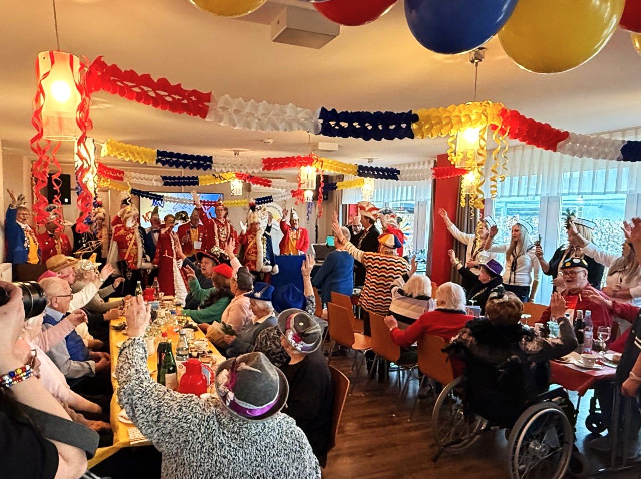 Besonders berührend: Auch Bewohnerinnen und Bewohner, die nicht an der Sitzung teilnehmen konnten, wurden nicht vergessen. Bereits zwei Stunden vor Veranstaltungsbeginn besuchten die Karnevalsmajestäten die Zimmer, überbrachten kleine Blumensträuße – und ganz viel närrische Freude. „Das Strahlen in den Gesichtern war der schönste Dank“, hieß es aus dem Organisationsteam.