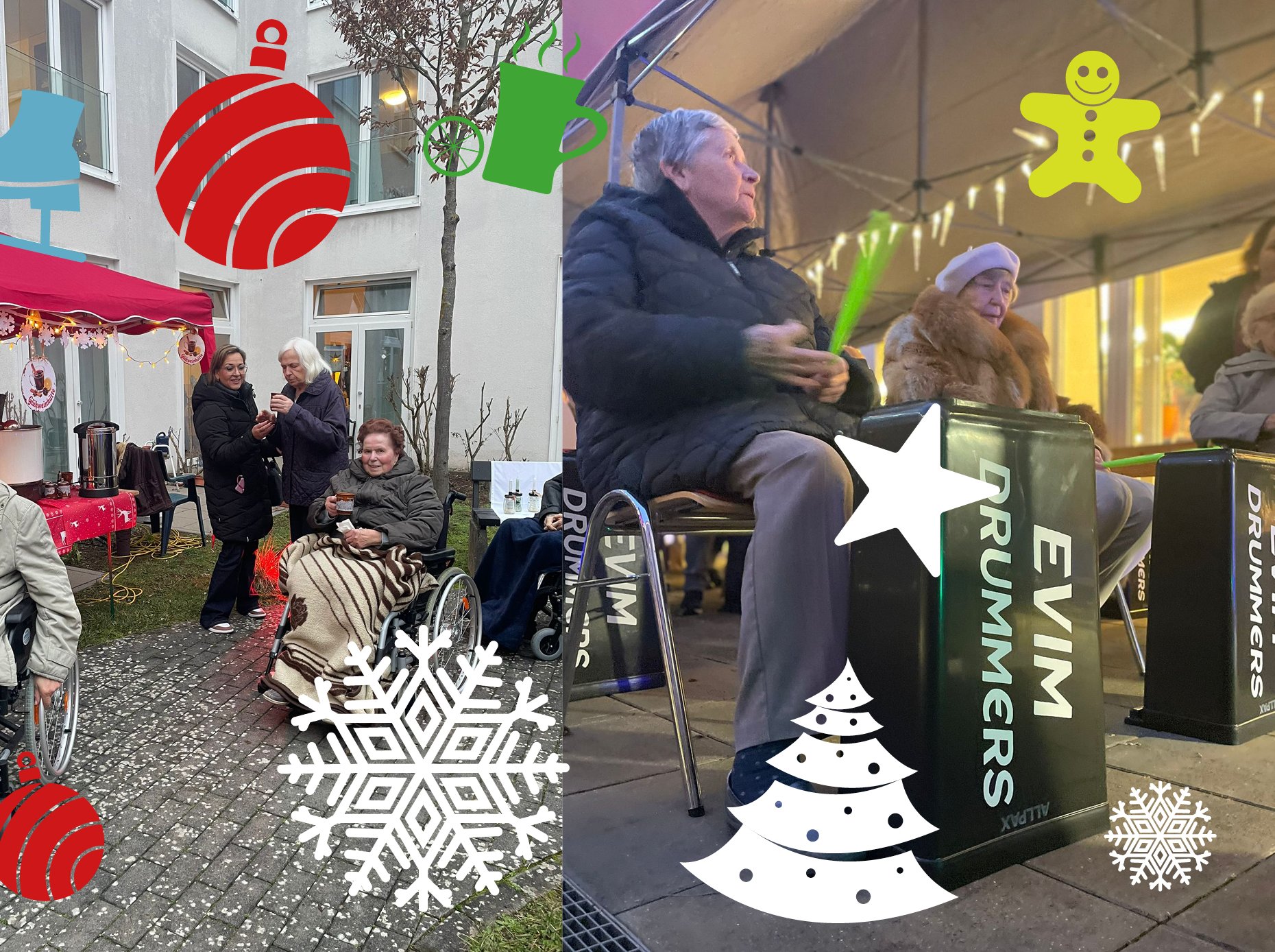Ein besonderes Sahnehäubchen setzte die stimmungsvolle Lichtershow von Victor Derr, die den Weihnachtsmarkt in bunte Farben tauchte und für leuchtende Augen sorgte. Mitarbeitende und Ehrenamtliche waren mit spürbarem Herzblut im Einsatz. Das größte Geschenk für das Team: Alle, wirklich alle Bewohnerinnen und Bewohner besuchten den Markt – und waren begeistert.